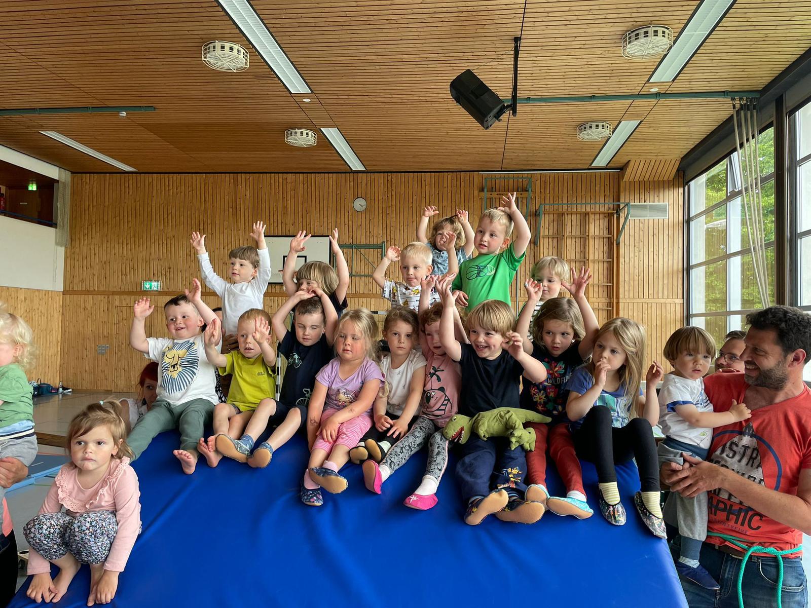 Im September 2021 wurde die Gruppe von einer neuen Übungsleiterin, Petra Buch, mit Unterstützung von Victoria Schrag, übernommen und wir, wie auch alle Teilnehmer, waren sehr froh, dass es nach langer Corona-Pause endlich wieder weitergehen konnte. Auch unter der neuen Leitung haben die MuKis sehr viel Spaß beim Turnen und Spielen.